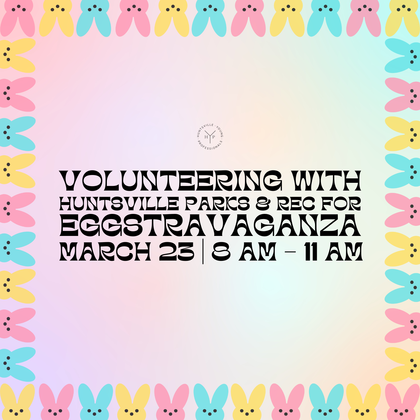 Join Huntsville Young Professionals as we volunteer with Huntsville Parks & Recreation for their annual Eggstravaganza on March 23rd at 8AM.